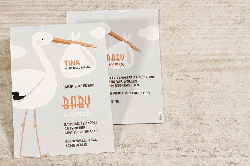 Manche Schwangere möchten das Geschlecht des Babys vor der Geburt ungern verraten. Auch für diese Mom to bes soll es eine passende Einladungskarte zur Baby Shower geben. Daher finden Sie in unseren Baby Shower Einladungskarten ebenfalls Karten, die farblich und gestalterisch geschlechtsneutral sind.